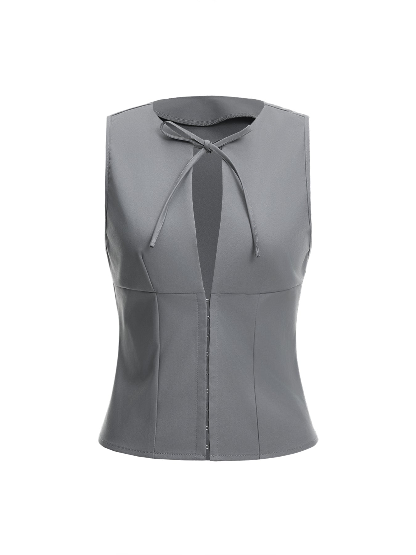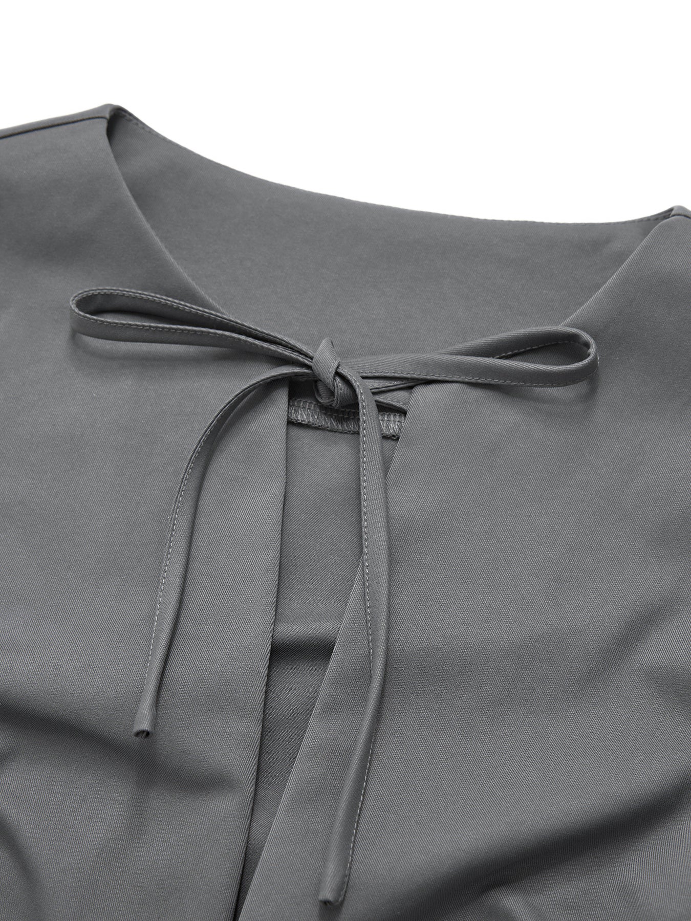Casual Buckle Cut Out Tie Neck Women Blouses -